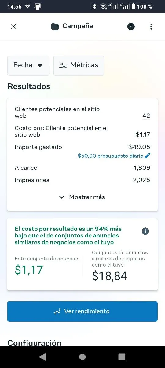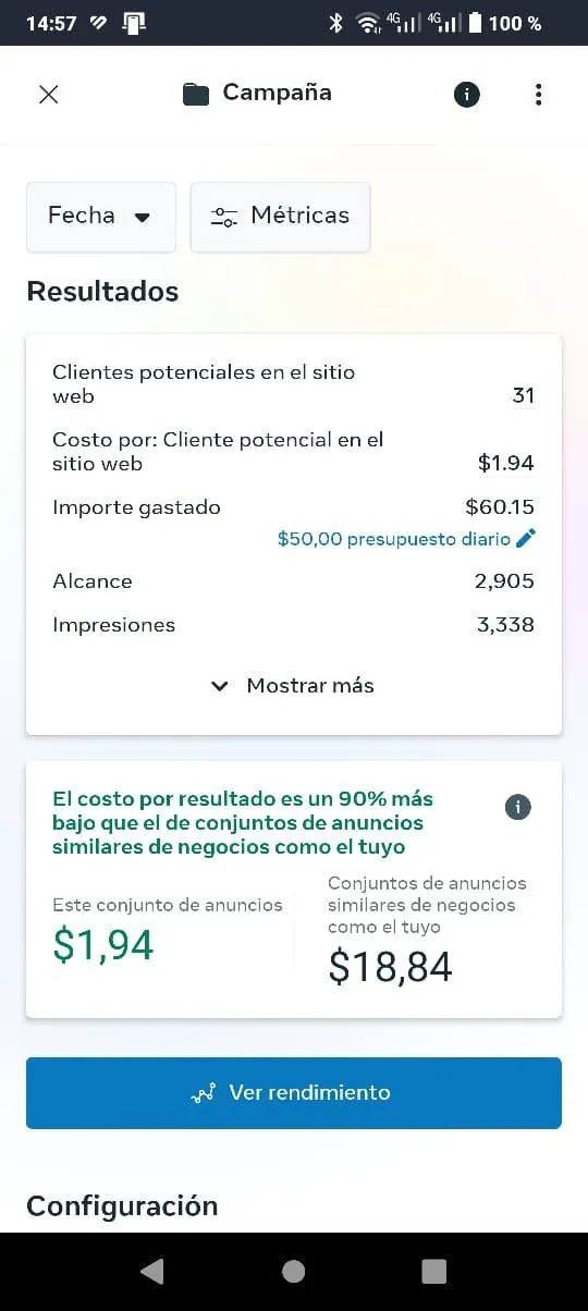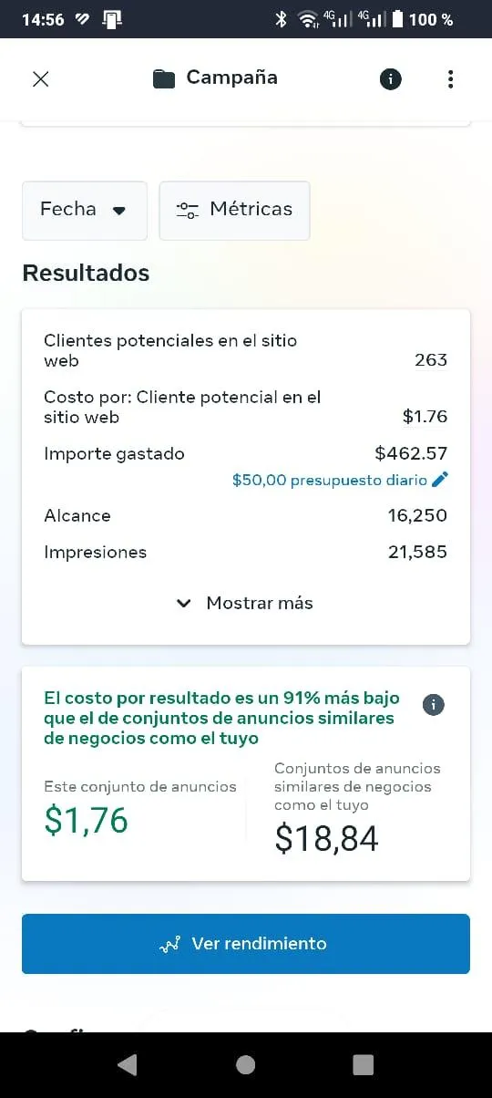 ¡COSTO POR RESULTADO HASTA 96% MÁS BAJO DICHO POR META!